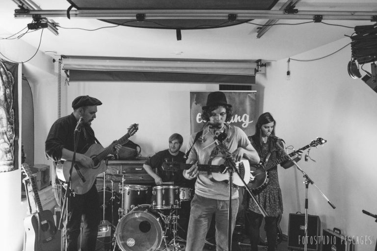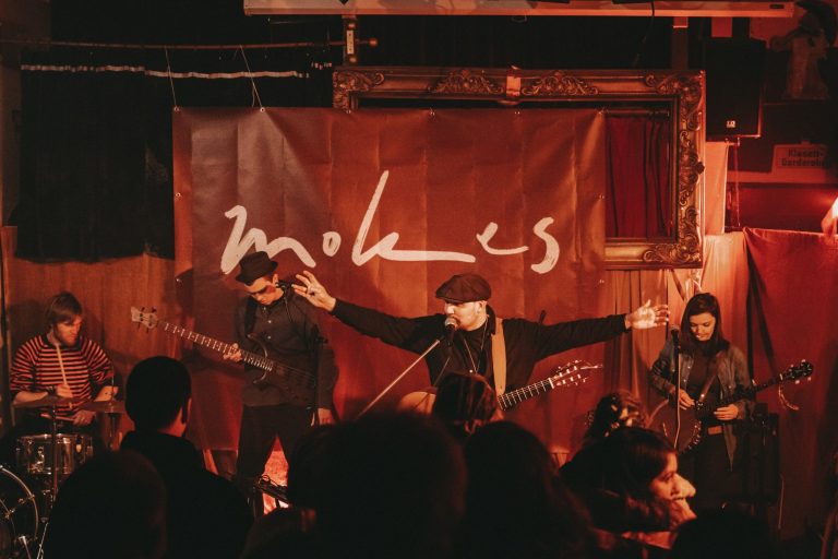 Eine Verbindung, die daraus entstand, ist die jahrelang andauernde Zusammenarbeit mit Ramon de Vries, mit dem ich zusammen mit Katharina Weyers und seit 2018 mit Christian Stoffels die Folkrockband Mokes gründete. Wir starteten als typische Folk-Formation mit Banjo, Mandolinen, Gitarren und Mundharmonika. Gerade in der Anfangszeit verschaffte uns das Spielen traditioneller Irish Folk-, Bluegrass- und Country-Lieder eine Menge Auftritte in Pubs, Clubs und Kneipen wie auch auf Straßenmusik-Festivals in unserer Region, überregional und deutschlandweit.